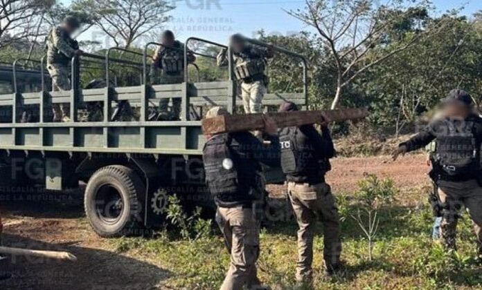 De acuerdo con la Fiscalía General de la República (FGR), el decomiso se realizó en el municipio de San Andrés Tuxtla, donde elementos federales identificaron madera proveniente de especies protegidas como apipi, gaga, cerillo y súchil, árboles característicos de la selva tropical húmeda cuya explotación está prohibida por la legislación ambiental vigente.