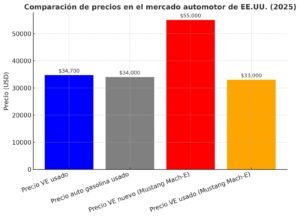 Un ejemplo de esta tendencia es el Ford Mustang Mach-E GT. Mientras que un modelo nuevo de 2024 tenía un precio de lista de alrededor de 55,000 dólares, una versión usada con 13,000 millas se vendió recientemente por 33,000 dólares, representando un descuento del 40%. Este tipo de oportunidades ha atraído a compradores interesados en vehículos eléctricos sin el costo inicial elevado de los modelos nuevos.