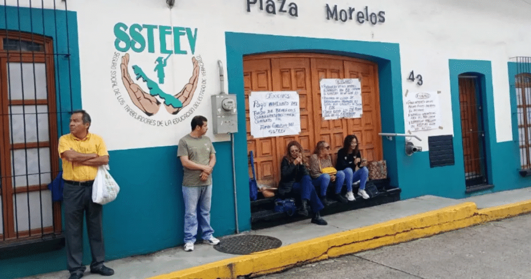 Los manifestantes, autosustentados con sus aportaciones —ya que el SSTEEV no recibe recursos públicos directos— acusan a una red interna de funcionarios que, según afirman, recorta prestaciones legítimas adquiridas tras años de servicio.