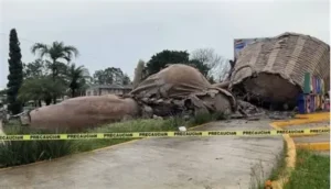 Álamo, Ver. — La identidad de la “Capital de la Naranja” ha sufrido un duro golpe. La mañana de este martes, habitantes de Álamo Temapache fueron testigos del colapso del “Colotero Monumental”, la icónica estatua que rinde homenaje a los trabajadores de la citricultura y que se erigía como el máximo emblema de la ciudad.