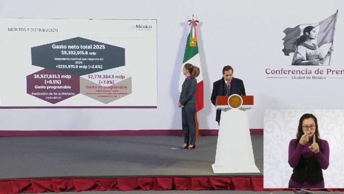Del monto total, 987.160 millones de pesos se asignan a 14 programas sociales prioritarios —un incremento del 15 % respecto al presupuesto aprobado para este año—, lo que representa el 2.5 % del Producto Interno Bruto (PIB). El programa que acapara la mayor parte de este presupuesto es la Pensión para Adultos Mayores, con 526.508 millones de pesos, equivalentes al 53 % del gasto prioritario. También destacan aumentos reales considerables en programas recientes como Pensión para el Bienestar de las Mujeres Adultas Mayores (267 %), Salud Casa por Casa (93.3 %) y Beca Rita Cetina (58.6 %).