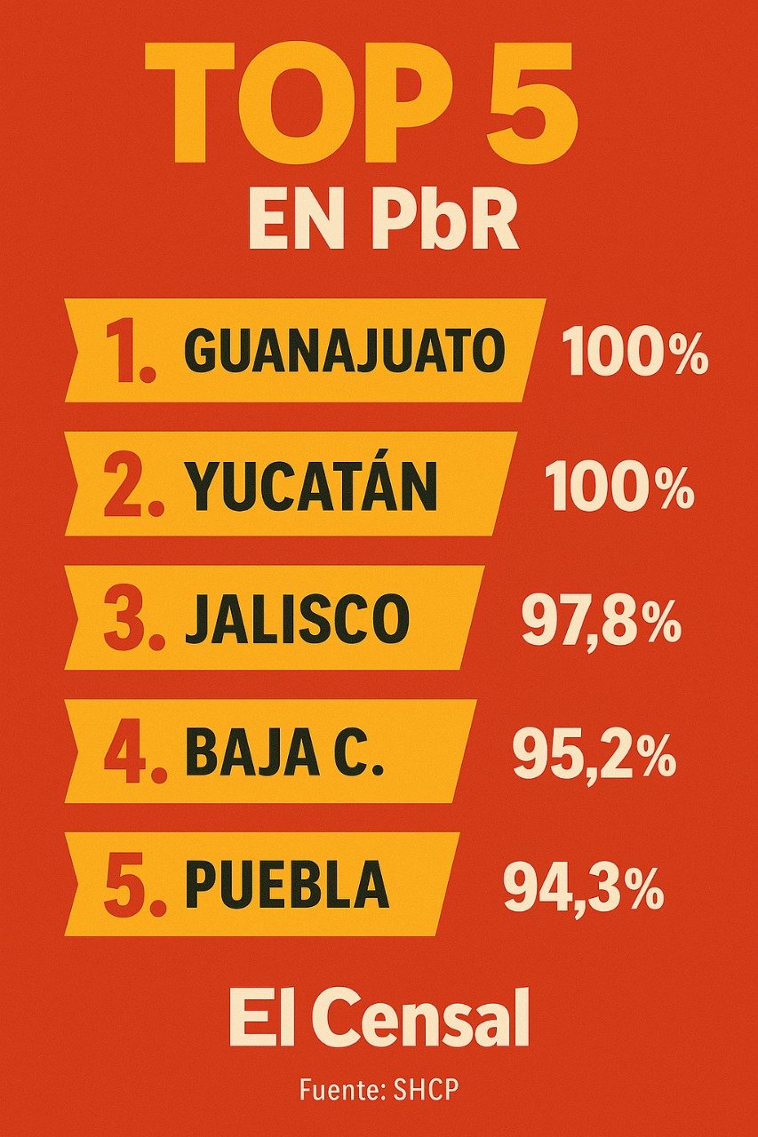 En la cuarta posición se encuentra Baja California, con un avance del 95.2%, consolidándose como uno de los estados con mayor madurez en la operación del PbR.
